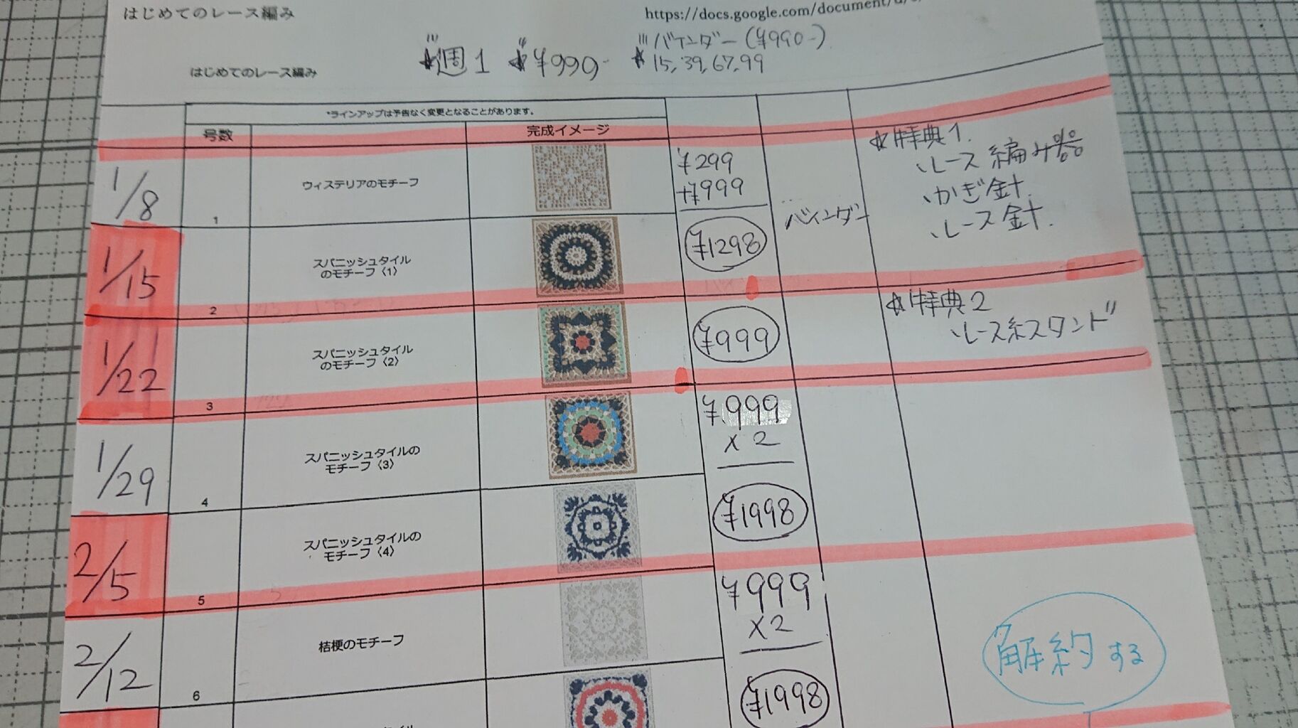 アシェットのはじめてのレース編みが1月8日から始まるので、
