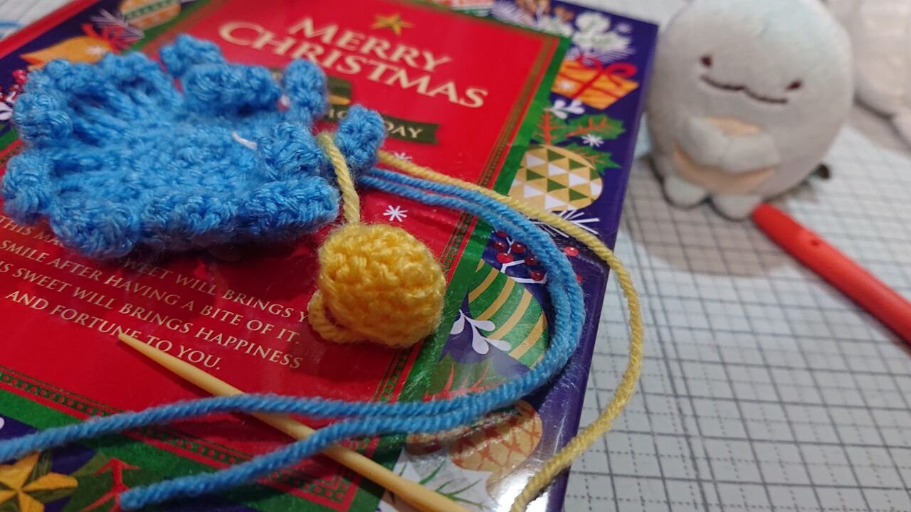 他の糸で編んでも やっぱりくるっとなってしまう・・・。