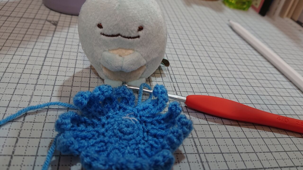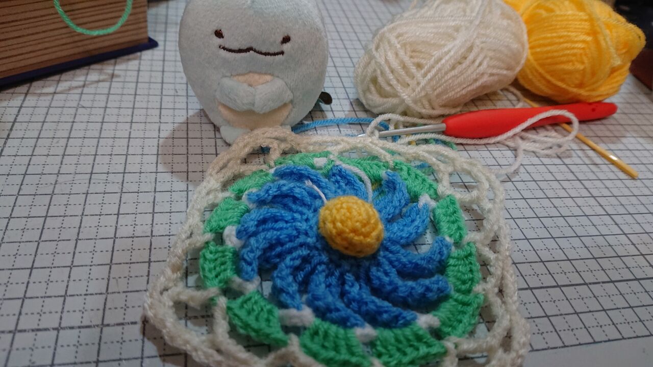 はじめてのレース編みは来週から4週ほど再開(ビッグモチーフ)