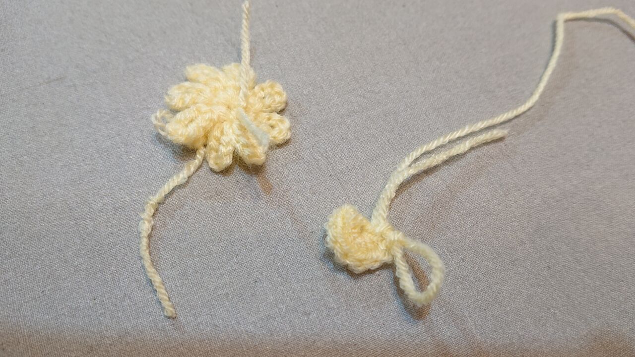 一段目から細編み+くさり編みで花を作る感じでした。
