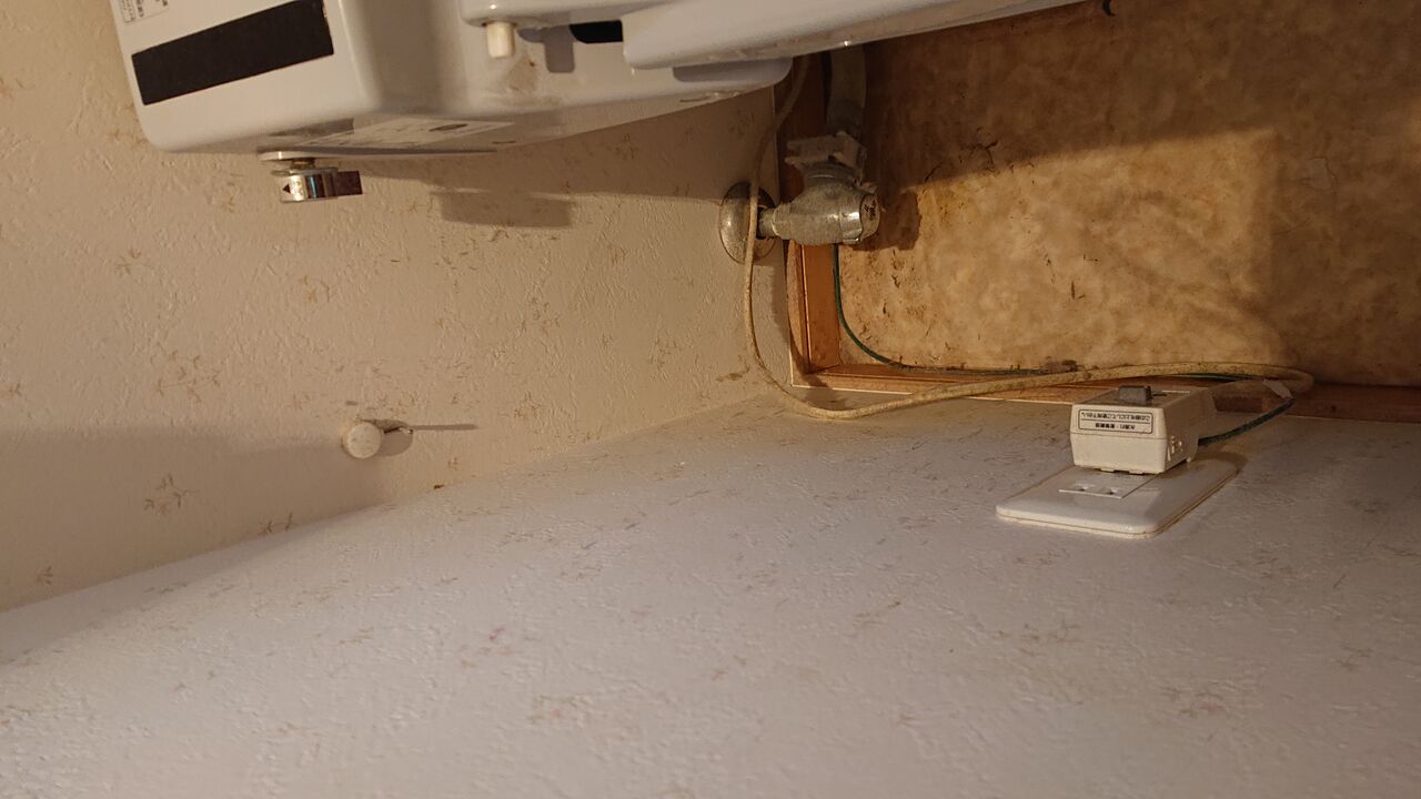 かなり汚い水道管周り。ホコリがびっちりついていて、