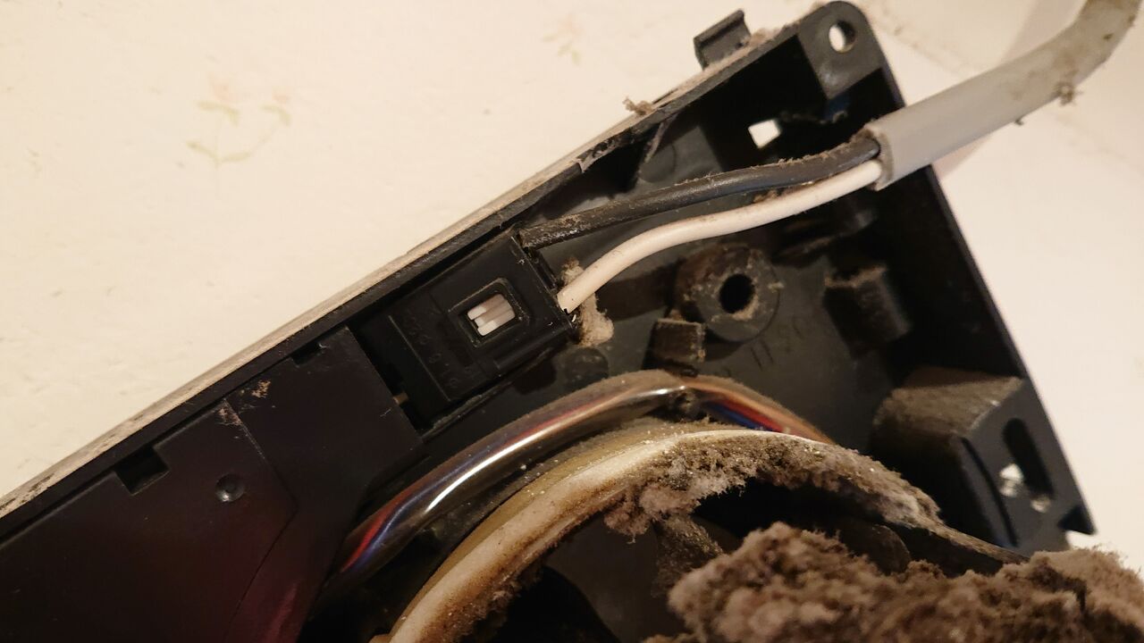 この配線が外せない。マイナスドライバーで外せるらしいけど、たぶん電気の免許がないとだめなレベルだと思った。