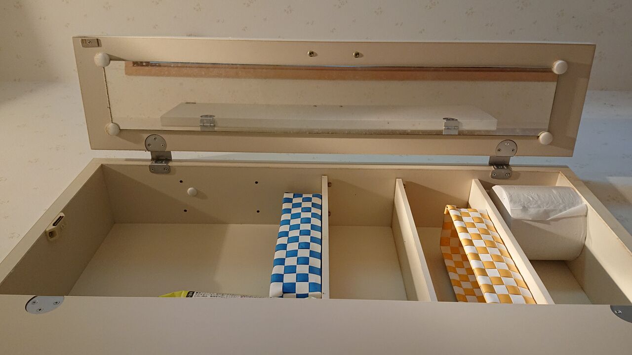 この棚に入っていたのは、赤ちゃん時代に使っていた干からびたウエットティッシュだけ。
