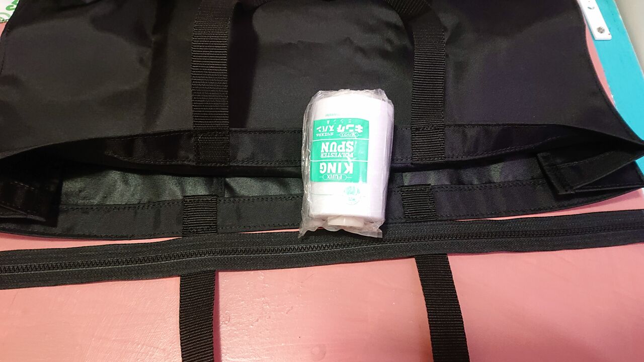 このバック。ナイロンでマチは10センチくらい有り、かなり大容量に入りそうな感じ。