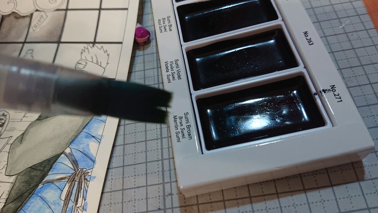 顔彩 263墨紫で塗る 今回は薄塗り~数回塗り部分アリ。