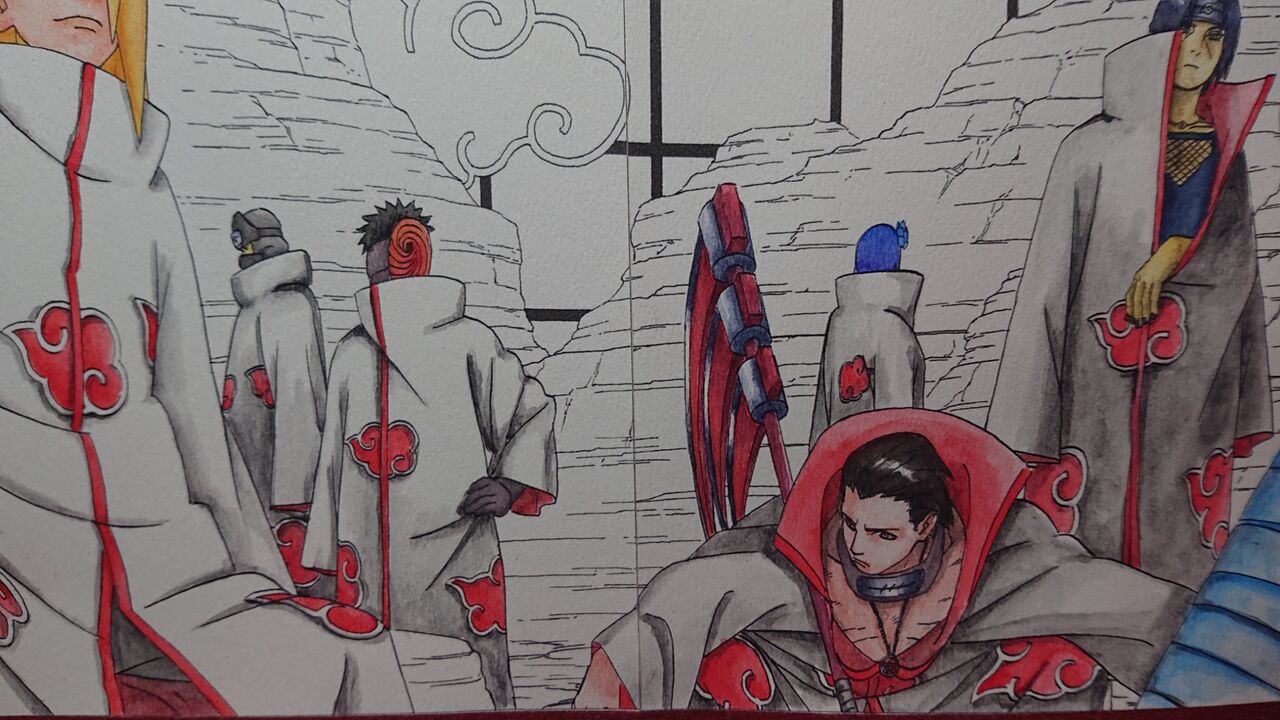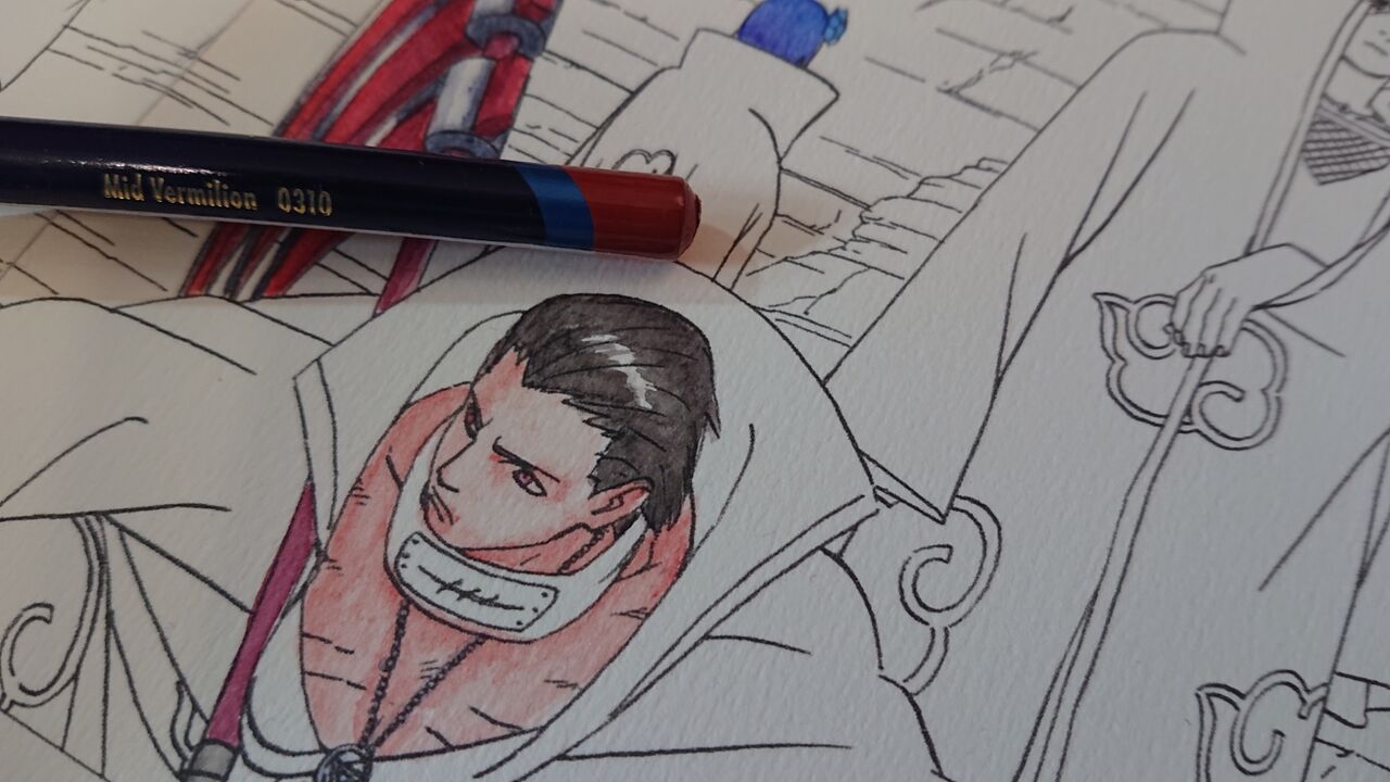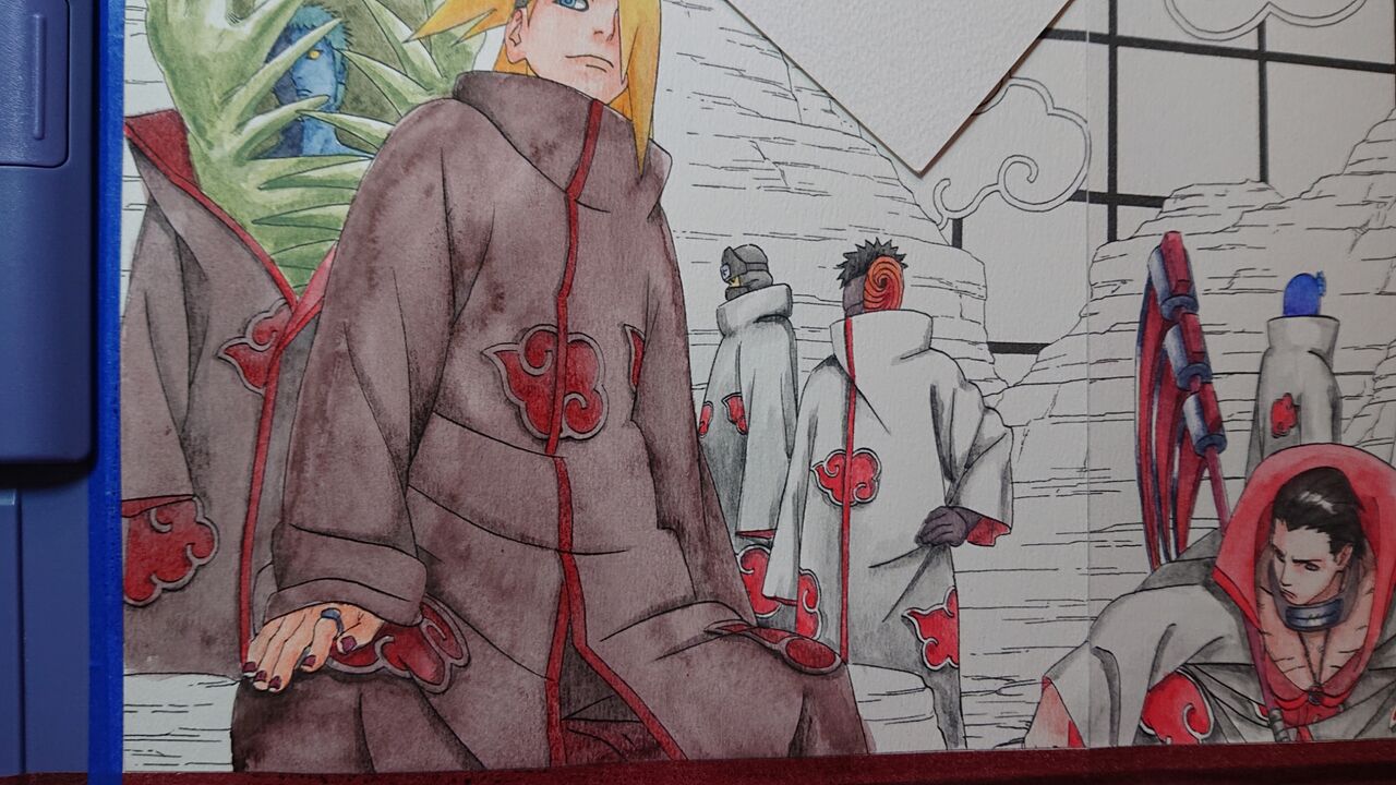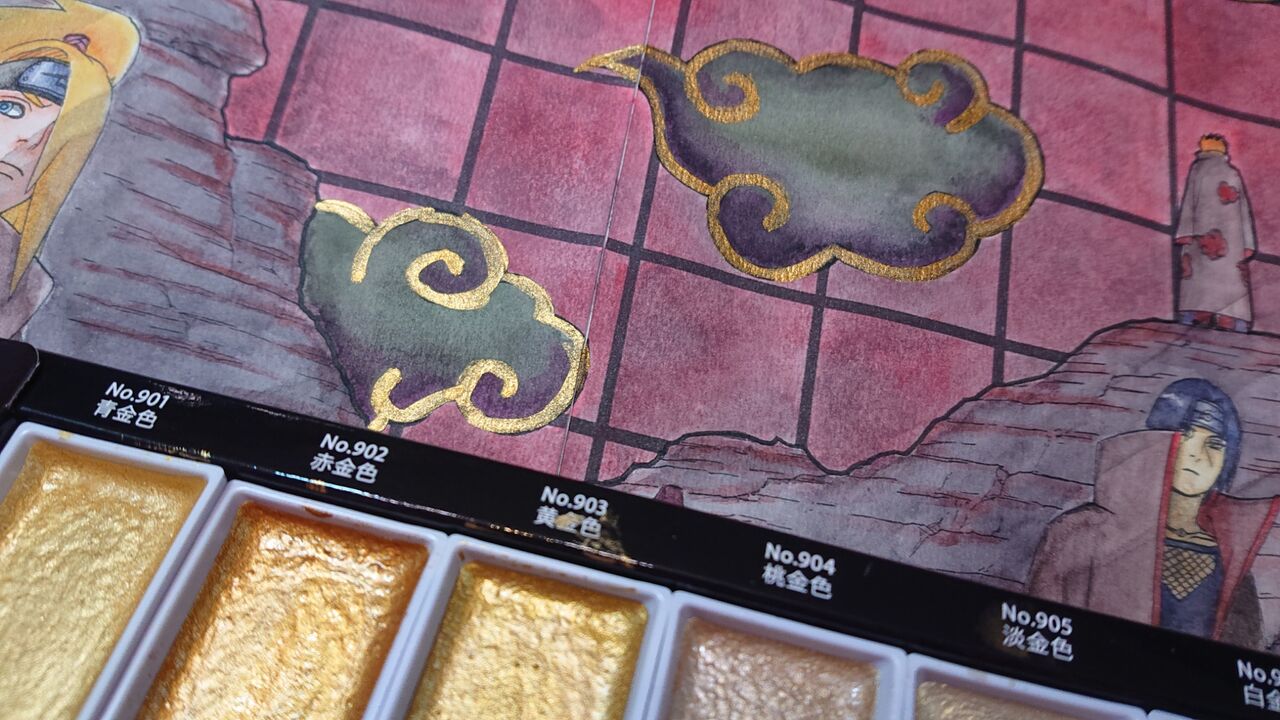 で、今回は顔彩を上から乗せる塗り方をするので、本来の色よりも発色通い色で衣類や武器を塗りました。↓白い暁衣装も新鮮かも。
