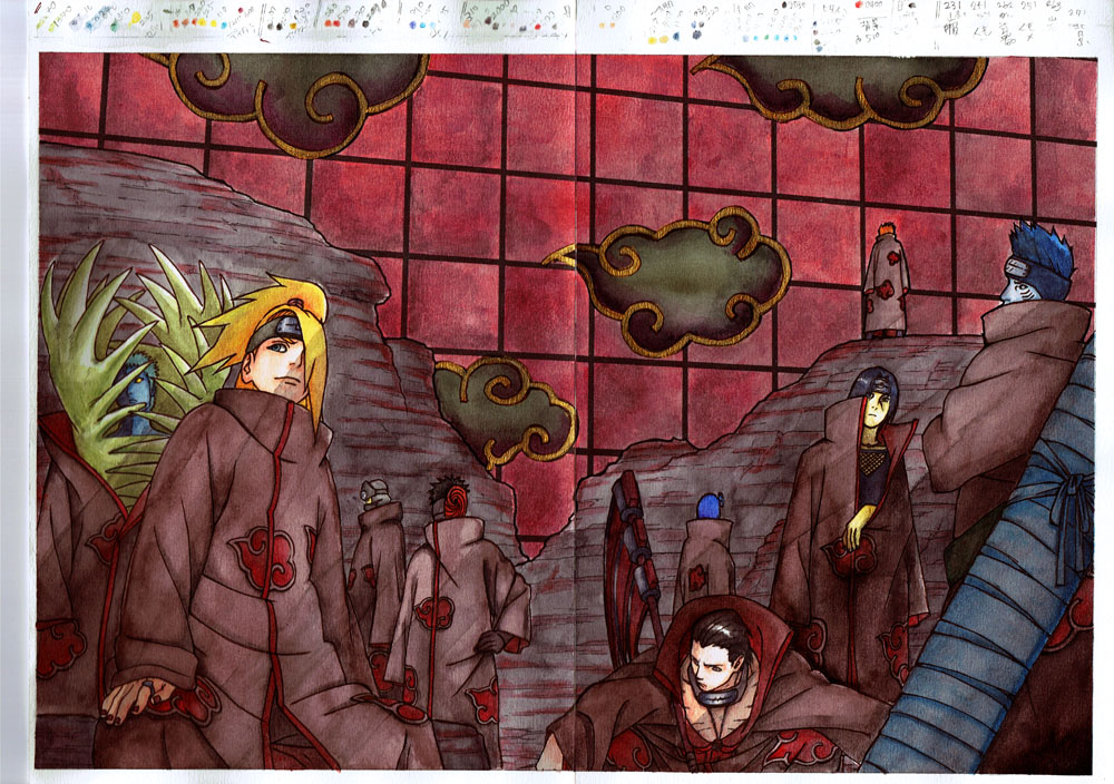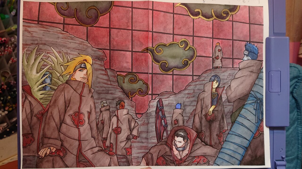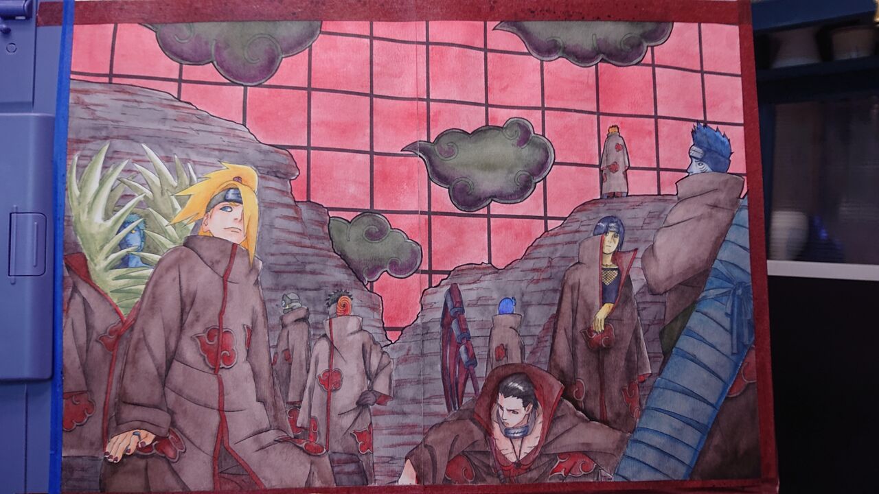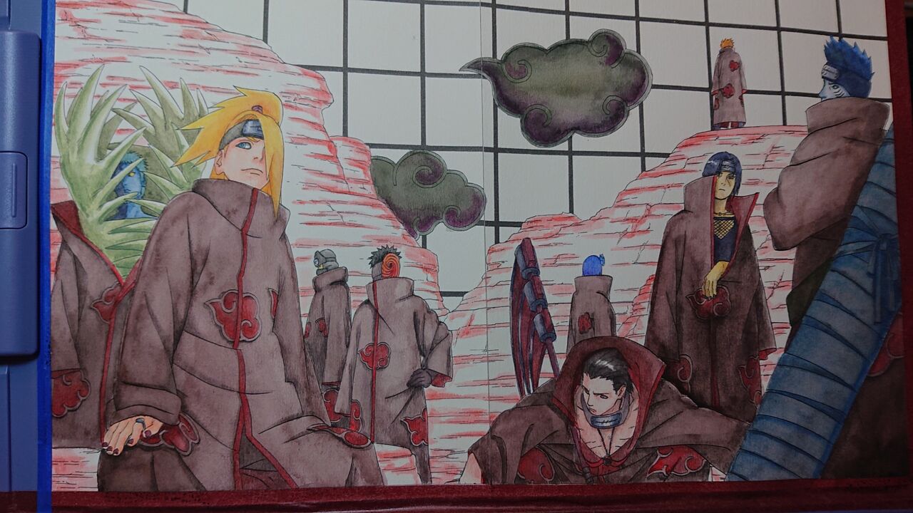で、今回は顔彩を上から乗せる塗り方をするので、本来の色よりも発色通い色で衣類や武器を塗りました。↓白い暁衣装も新鮮かも。