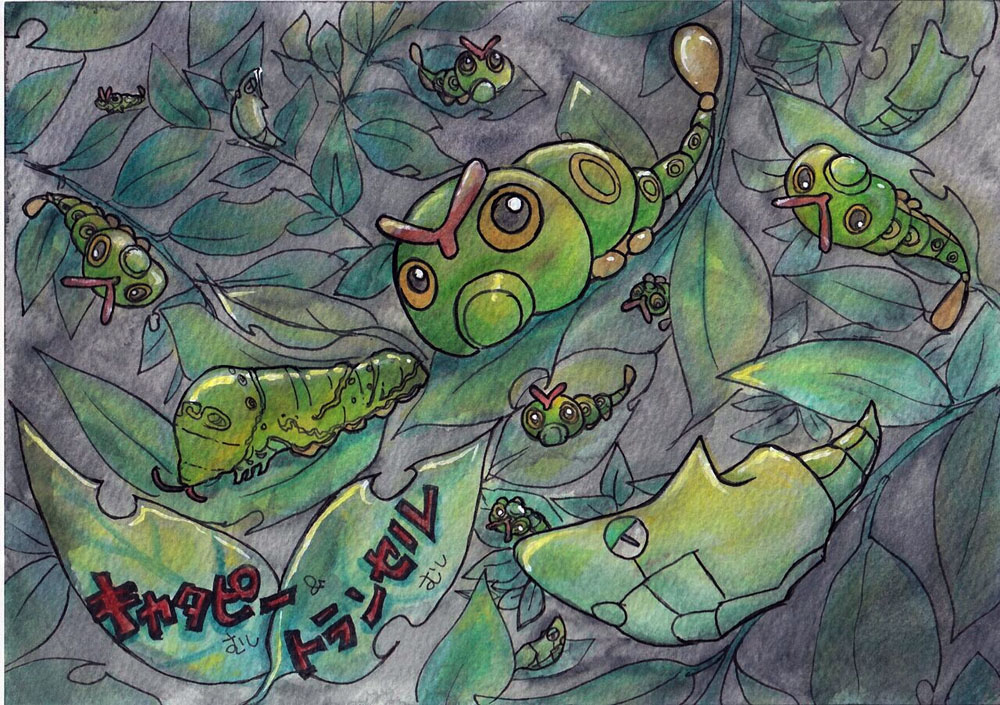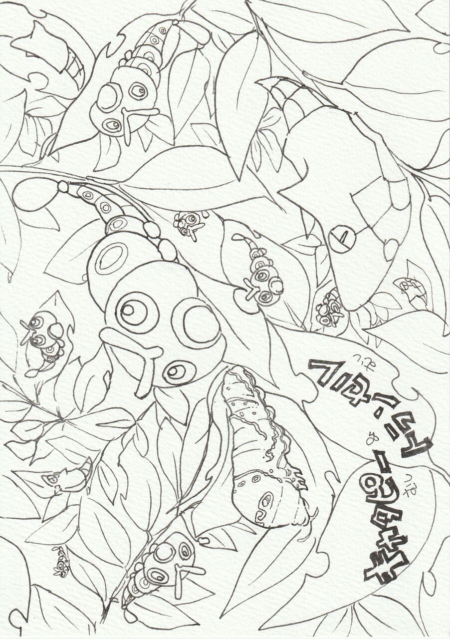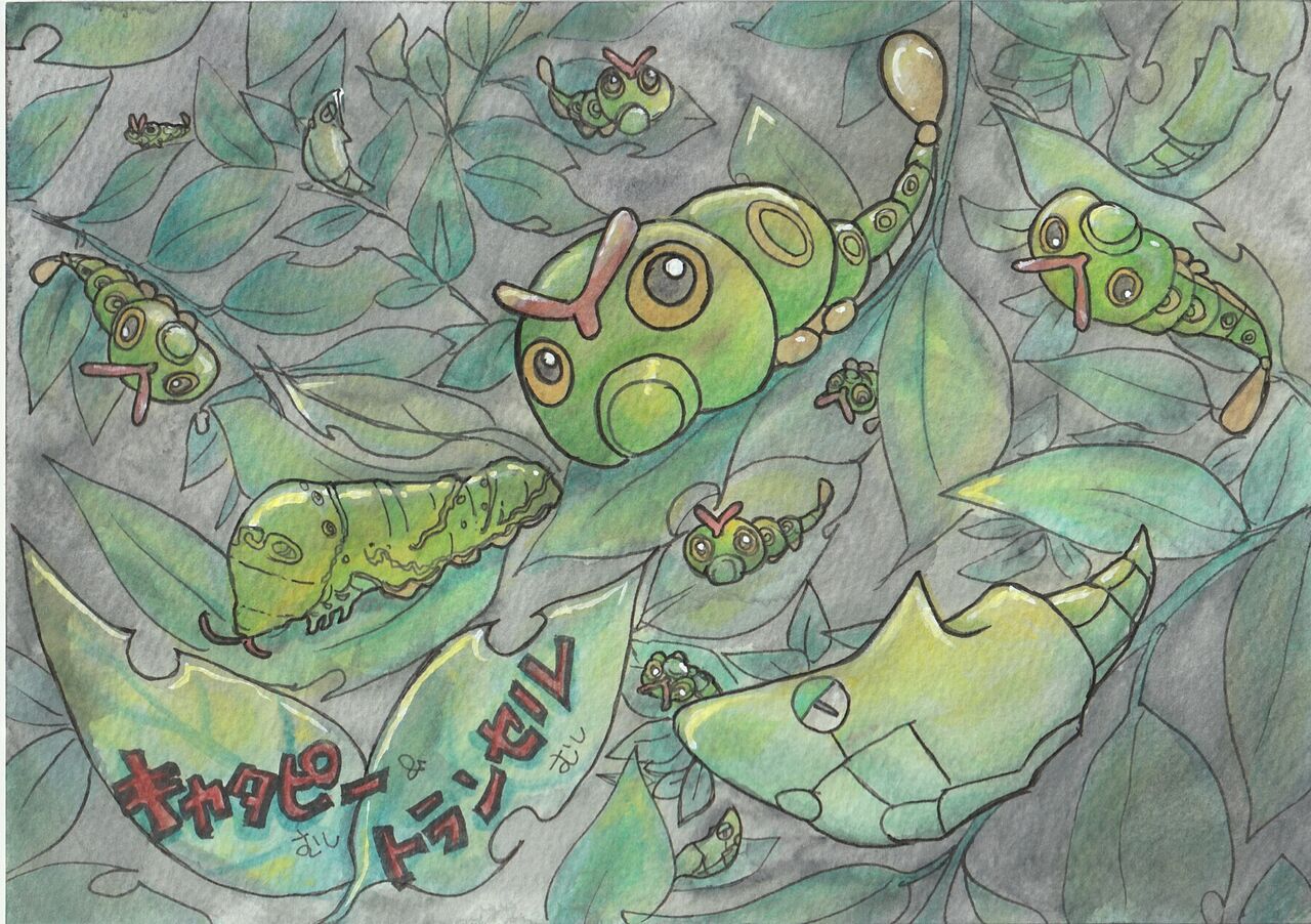 キャタピーとトランセルを描きました