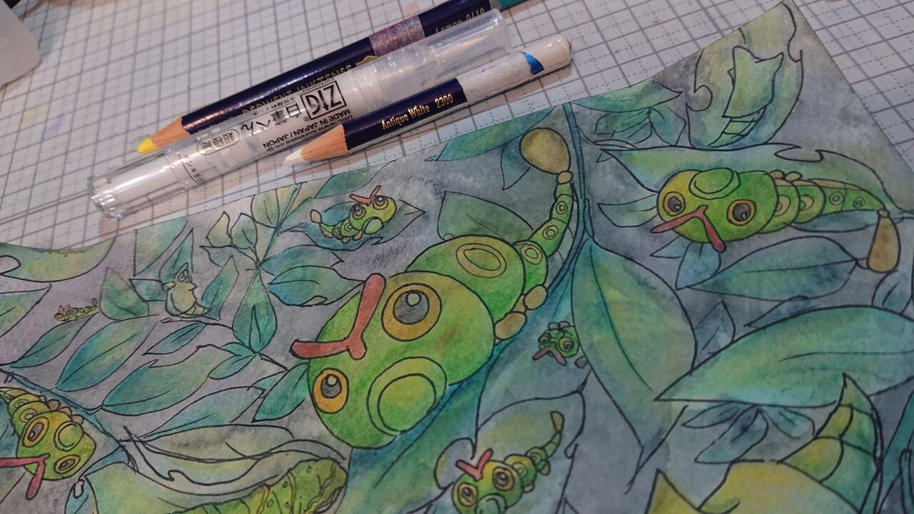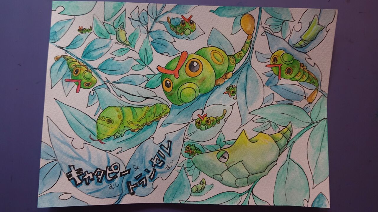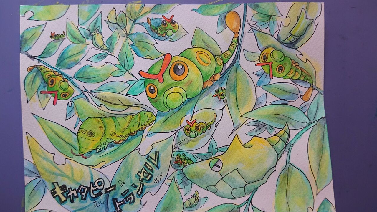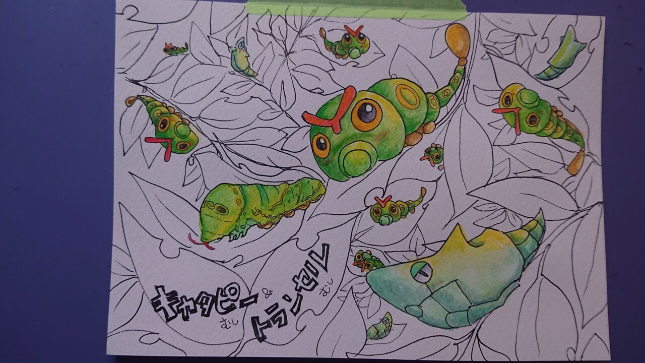 キャタピーとトランセルを描きました
