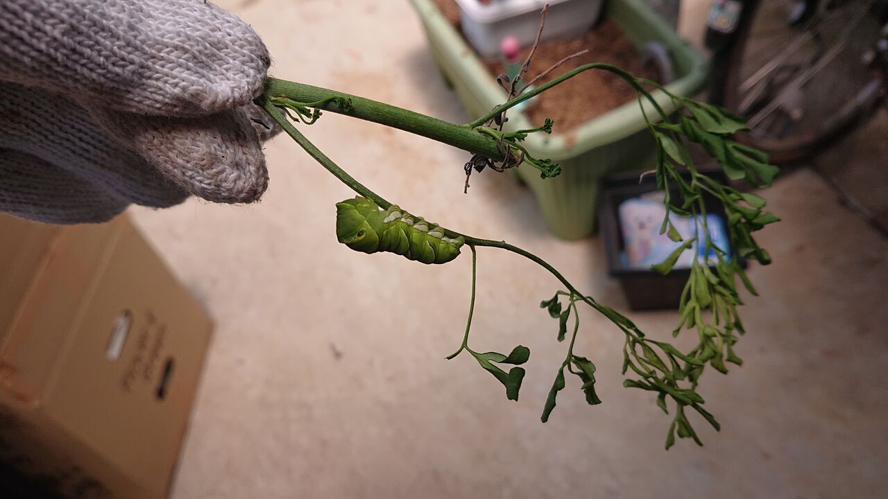 そして 我が家の花についていた青虫。