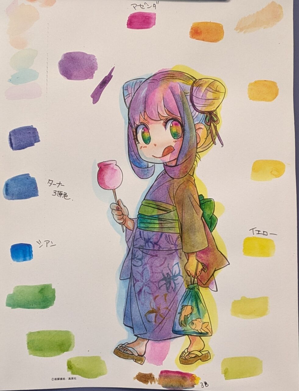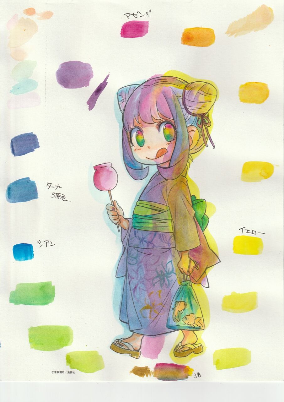 今日は久々にインクテンス以外で塗ってみました。ターナーアクリル3原色カラー。